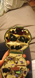 Un giocattolo a forma di testa di drago verde, parte della serie Mighty Max. - Design dettagliato a forma di testa di drago. - Logo MM rosso e giallo sul fronte. Uno dei personaggi ha mano rotta e un etichetta é quasi tutta rovinata