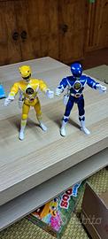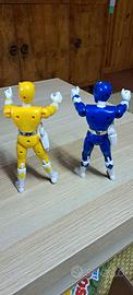 Action figure dei Power Ranger, originale Bandai 1993, personaggi blu e giallo (altezza ca. 20 cm), completi di pistola. Ottimo stato e articolazioni che reggono perfettamente, come visibile in foto.