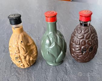 Serie di tre bottigliette mignon integre, anno 1970, da collezione.