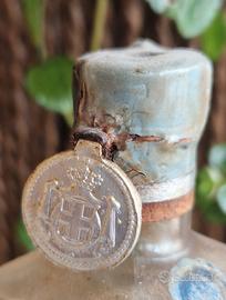 Bottiglietta mignon vintage di Doppio Kummel Stock con sigillo della Monarchia, autentico pezzo da collezione storico.