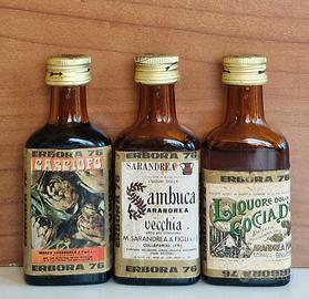 80 Mignon Marco Sarandrea di Collepardo da collezione originali e datati, in condizioni variabili. Alcune bottigliette potrebbero presentare segni del tempo: etichette scolorite, tappi ossidati o lievi perdite. Vendute come oggetti decorativi/storici, non per il consumo.