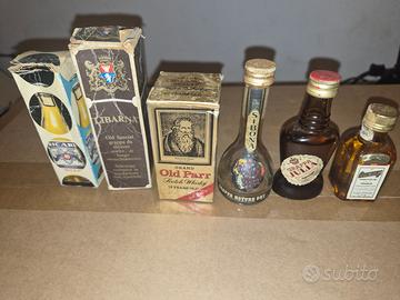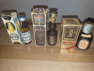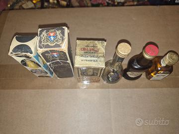 Vendo collezione di bottigliette mignon vintage, originali dell'epoca e ancora sigillate. Ottime per collezionisti o per esposizione. Ecco la lista: Ricard 45 (Pastis de Marseille) - completa di astuccio in cartone decorato: €6,00 Old Special Grappa Libarna - bottiglia alta scura in coccio con laccetto, completa di astuccio originale in cartone rigido: €8,00 Grand Old Parr (Scotch Whisky 12 Years Old) De Luxe - bottiglia in vetro lavorato, completa di scatola originale illustrata: €8,00 Grappa Nature Dry Sibona - bottiglia alta con forma a bolla alla base: €4,00 Grappa Julia (Riserva Stravecchia): €4,00 Cointreau (Liqueur Extra Dry): €4,00 Le bottiglie sono come da foto. Trattandosi di pezzi vintage, il livello del liquido può essere sceso a causa della naturale evaporazione. Vendute come oggetti da collezione, non destinate al consumo Faccio uno sconto con l'acquisto di almeno 3 bottigliette Spedisco con imballaggio accurato e super protetto. Scrivetemi per comporre il vostro lotto e approfittare dello sconto! Controlla anche gli altri annunci per vedere le altre bottigliette