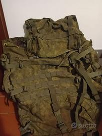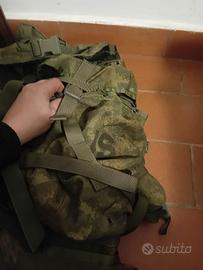 Lo zaino è stato tinto: le parti boanche sono diventate di un tan scuro mentre quelle grigie ed il webbing (cinghie ecc) sono diventate di un verde color muschio. Completo con 2 sustainment pouch