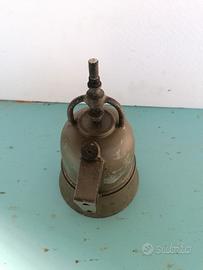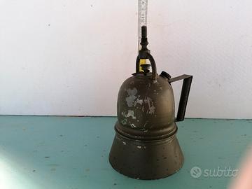 Lanterna militare a carburo acetilene, color verde, manca il pezzo superiore, prodotta a metà degli anni '30 da un' industria manifatturiera di Milano, la lanterna non ha nessun marchio di fabbrica, ho trovato le informazioni su internet. A mio umile parere abbastanza difficile da reperire, in quanto non ne ho trovate in vendita altre, ovviamente mi posso sbagliare.