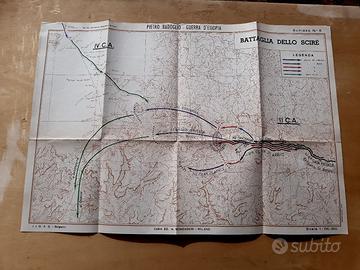 Guerra d’Etiopia, marescialle Badoglio, tavole e schemi delle azioni militari fino alla conquista di Addis Abeba. 9 tavole a colori di diversa misura (da 30x40 a 60x90) due grandi carte geografiche dell’Africa orientale. 30