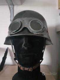 Elmetto Tedesco con occhialoni in ferro molto pesante (non i soliti in alluminio da parata o metallo leggero) colore originale intoccato. vendo a euro 270 non spedisco solo ritiro a mano