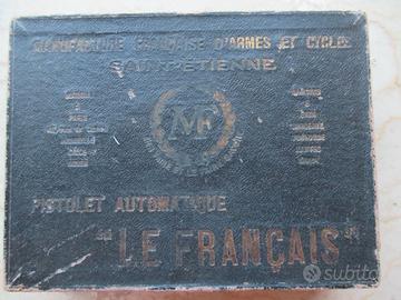 fondina militare per pistola militare s/a Astra-Unceta y Cia. modello 400 in calibro 9 largo entrata operativa nel 1921 , arma utilizzata durante la guerra civile in Spagna nel 1935 + cofanetto con accessori per la pistola francese La Francaise .