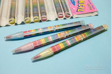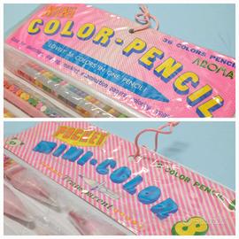 penne in plastica con pastelli multicolore all'interno, marca AROMA made in Japan:
