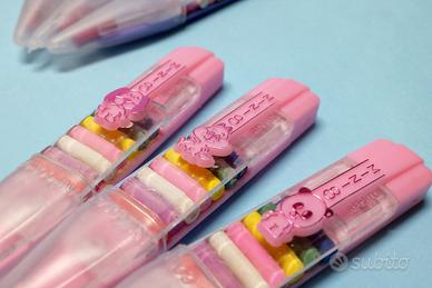 - la matita piccola, contenente 8 pastelli all'interno, disponibile nei colori: viola, rosa, giallo, celeste.