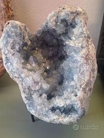 Splendido geode di Celestina (Celestite) naturale, con cristalli azzurro chiaro trasparenti e perfettamente formati.