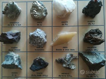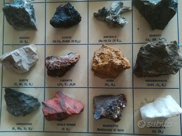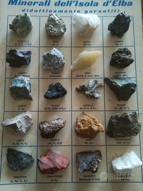 Tavola con 20 minerali dell' Isola d'Elba didatticamente garantiti