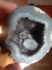 Geode con cristalli di calcite e incrostazioni di quarzi fumee