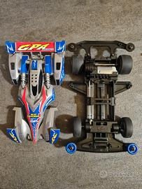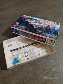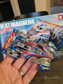 Tamiya Mini4wd Beat Magnum GPA, nessuna rottura, eventuali screpolature e scollature degli adesivi sono stare ripristinate a regola d'arte dal sottoscritto, telaio pulito e integro, nessun difetto rilevante da segnalare, istruzioni assenti. box in buone condizioni.