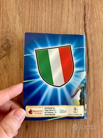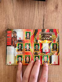 Mini album bubble gum figurine Calcio Merlin stickers, incompleto (mancano 100 figurine su 252). Include 2 bustine vuote e 20 figurine doppie.