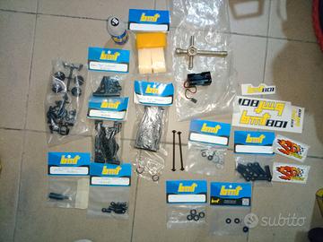 Mini auto da competizione da pista BMT 801 GT RTR a scoppio telecomandata a distanza pari al nuovo vedi pianale con parti sostituite ,da plastica in ergal , con diversi accessori nuovi e gomme slik usata tre volte avuta in permuta e quindi non sono un intenditore ma il proprietario mi ha detto che ha speso tanti soldi. Per informazione Mauro 348 6902654 ho anche un video in moto.