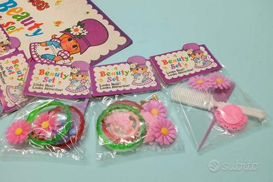 Ogni bustina contiene un set bellezza in plastica colorata, nel classico stile dei giochi - giocattoli anni 70.