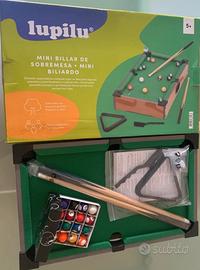 Descrizione: Marca: Lupilu Età consigliata: 5+ Materiale: Realizzato in MDF (Medium-Density Fiberboard). Giocatori: Adatto per 2 giocatori. Portabilità: Ideale per essere trasportato facilmente ovunque. Contenuto del set: La confezione include il mini tavolo da biliardo, palle da biliardo colorate, due mini stecche, gessetto blu per stecche, un triangolo per disporre le palle e una spazzolina. Design: Il tavolo presenta un panno verde e le classiche sei buche. Questo mini gioco offre un modo divertente e coinvolgente per praticare o giocare a biliardo in un formato conveniente e salvaspazio. Spedizione in tutta Italia.