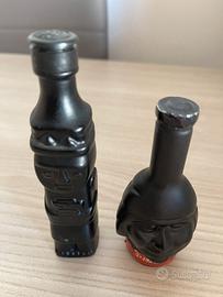 bottiglie da collezione contenenti Pisco, un distillato di uva prodotto principalmente in Perù. Design: Le bottiglie raffigurano figure antropomorfe ispirate alla cultura Inca, realizzate in ceramica nera o materiale simile. Contenuto: Il Pisco è un'acquavite di vino che può avere una gradazione alcolica tra il 40% e il 50%. Origine: L'etichetta indica che queste bottiglie specifiche sono associate a Barcellona, Spagna, sebbene il Pisco sia simbolo della tradizione sudamericana. Vendo insieme.
