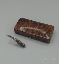 Piccolissimo mini coltello a serramanico da collezione in condizioni perfette, sul dorso della custodia, come da foto, alcune imperfezioni dovute al tempo trascorso.