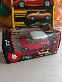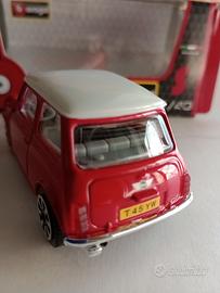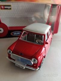 Modellino Mini Morris Cooper S 1.3 cc., vintage, bicolore della Burago italian design, scala 1/43 in confezione originale.
