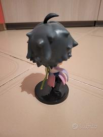 Caratteristiche: La statuina è realizzata in stile "chibi" (testa grande e corpo piccolo) e riproduce fedelmente i dettagli del personaggio: dai capelli scuri con i ciuffi azzurri al tipico abbigliamento bianco, viola e verde.