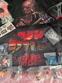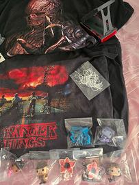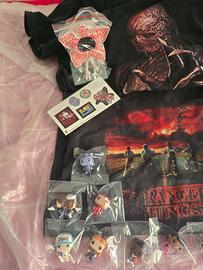 Set di mini Funko di Stranger Things più "Demogorgone in formato più grande". Più gli adesivi, e il supporto per smartphone. Include 13 personaggi , gadget, e iconici della serie. I personaggi sono Dustin, Demogorgone pen deco, Vecna supporto smartphone, Max e Max Sottosopra , Lucas , Erica , Steven e Robin, Hopper , Nancy, Eddie Sottosopra, Steve Sottosopra, Demogorgone". Per più fan della serie più vista.