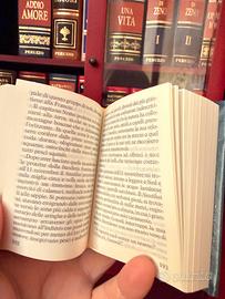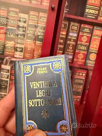 mobiletto libreria in miniatura contenente una collezione di 92 classici della letteratura. Collezionismo editoriale di libri in miniatura Opere classiche come "I Promessi Sposi" e "Madame Bovary".
