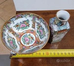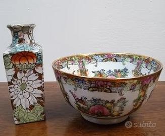 2 Mini porcellane orientali. Ciotola fine decorata e piccolo portaprofumo