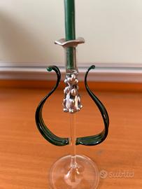 Due bellissime portacandele in vetro soffiato . Lavorato a mano. Una blu e una verde. Soffieria Parise. Altezza con candele cm 16,5. Diametro cm 4,5