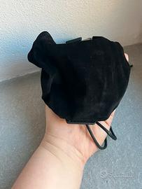 Mini sacca nuova, mai usata, realizzata in simil pelle nera con decorazioni incise a tema nordico/vichingo e simboli runici.
