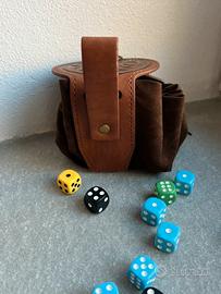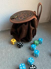 La sacca è richiudibile tramite fermacorda, pratica e resistente, con uno stile medioevale/wiccan molto curato nei dettagli. I dadi NON sono inclusi.