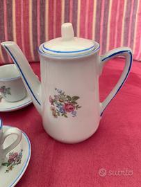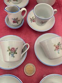 Mini servizio da Te’ in ceramica per gioco bambole o collezione . Composto da 6 piattini e tazzine , teiera e piccolo bricco. Per vedere le dimensioni ho fotografato una moneta da 2 euro insieme. Gli oggetti non presentano ne loghi ne marche e nessuna rottura o sbreccarura . Risalente agli anni 70. Accetto procedura Tuttosubito con spese di spedizione a carico acquirente .