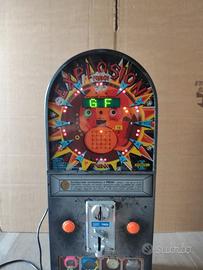 Mini slot machine vintage modello explosion con simpatico gioco led, la pallina led dovrà andare su uno dei premi indicati sulla ruotina, in caso di premio il giocatore avrà la possibilità di raddoppiare (tasto DX) il premio , oppure cumularlo (tasto SX) , in caso di vittoria del premio la macchina simulerà un mini bingo led.