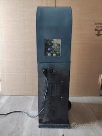 Vendo mini slot machine vintage da tavolo colore Grigio Metallo Vintage, mini slot machine d'epoca ideale per collezionisti e amanti del vintage, mini slot machine vintage di colore Grigio Metallo Vintage, con erogatore di biglie o chewing-gum al suo interno (erogatore abilitabile su richiesta al venditore) , mini slot vintage con espositore di orologi e con espositore di biglie , mini slot machine vintage molto caratteristica e ideale per luoghi d'arredo.