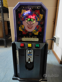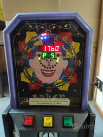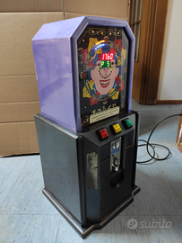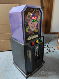 Mini slot machine da tavolo , mini slot machine vintage da tavolo , colore blu scuro e nero , mini slot machine vintage in ottime condizioni e funzionante in tutte le sue parti, modello Joker, mini slot machine con erogatore di ticket in caso di premio, gettoniera elettronica a comparazione , lettore di banconote a comparazione.