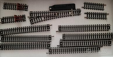 Mini trenini elettrici vintage scala N, motrice, vagoni, lampioncini con lampadine, binari con scambio; i tre lampioncini sono funzionanti; il locomotore rappresenta una motrice da manovra della Union Pacific, è funzionante, anche i vagoni. Cell:3886917567.