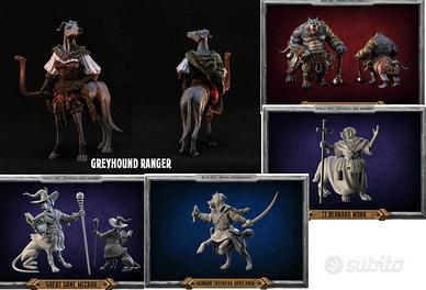 Vendo collezione di miniature della Punga Miniatures dei Canitaurs. I modelli sono ancora nuovi e imbustati, tutti possiedono una parte extra per essere montati quadrupedi invece che bipedi (come mostrato in foto per l'akita samurai).Le miniature sono in scala 50mm, in ottima resina con alto livello di dettagli.I modelli sono : Corgi,the Good boys, akita, alano, san bernardo, pastore tedesco, pitbull, Chihuahua, Chow-Chow, bassotto, doberman, husky, barboncino, carlino, raiju, shiba, Cocker spaniel,il Chaos Cat. Ogni modello viene 10€, se comprati in blocco vi è uno sconto e il tutto viene venduto per 130€. Per qualsiasi domanda contattare il venditore.