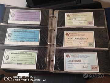 101 MINIASSEGNI ANNI 76/ 77 CON ALBUM DEDICATO DUE CON ERRORI DI STAMPA BANCA INDUSTRIALE GALLERATESE 100 150 200 LIRE BANCA DI CHIAVARI 100 200 300 LIRE CREDITO ARTIGIANO 100 150 200 LIRE BANCA SELLA 100 150 200 250 300 350 LIRE BANCA ANTONIANA 100 LIRE BANCA POPOLARE DEL METAURO 50 100 150 200 250 300 350 LIRE ISTITUTO BANCARIO ITALIANO 50 100 LIRE CASSA RISPARMIO VENEZIA 150 LIRE CASSA RISPARMIO BIELLA 100 150 LIRE CASSA RISPARMIO CUNEO 100 150 200 LIRE BANCA AGRARIO BRESCIANO 100 150 200 LIRE BANCO LARIANO 100 150 200 LIRE BANCA POPOLARE DI BERGAMO 100 150 200 250 LIRE BANCA DEL FRIULI 100 150 LIRE BANCA POPOLARE DI MILANO 50 100 150 200 LIRE BANCO AMBROSIANO 100 150 LIRE BANCA PROVINCIALE LOMBARDA 100 150 200 LIRE IST.BANCARIO SAN POLO TORINO 50 100 200 LIRE BANCA CATTOLICA DEL VENETO 100 LIRE B.CA CREDITO AGRARIO FERRARA 50 100 150 200 LIRE ISTITUTO CENTRALE BANCHE POPOLARI 100 LIRE BANCO DI SICILIA 100 150 LIRE B.CA AGRICOLA COMM.LE REGGIO EMILIA 100 LIRE BANCA DI TRENTO E BOLZANO 50 150 200 LIRE CREDITO VARESINO 100 150 200 LIRE IST.C.LE BANCHE E BANCHIERI 100 LIRE BANCA POPOLARE DI NOVARA 100 LIRE ICCREA 100 LIRE BANCA DEL SALENTO 100 LIRE BANCO DI NAPOLI 100 LIRE CEDITO ITALIANO 100 150 LIRE BANCO SANTO SPIRITO 100 150 LIRE BANCO SAN PAOLO BRESCIA 100 150 200 LIRE BANCA SELLA 100 150 200 250 300 350 LIRE CASSA RISP. REPUBBLICA SAN MARINO 150 200 LIRE