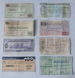 Vendo in blocco lotto di n.26 miniassegni come da foto. Consegno gratis BO-FE