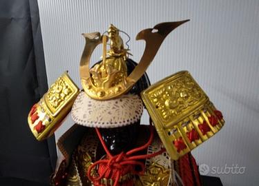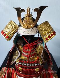 Miniatura di armatura samurai giapponese (Yoroi e Kabuto), realizzata tra gli anni 1960-1980 con alluminio, legno laccato e carta.