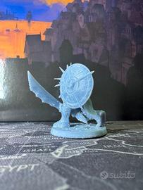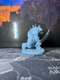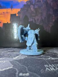 Miniatura in resina non dipinta, raffigurante un orco corazzato pronto alla battaglia. Armato di una spada massiccia e scudo decorato, perfetto per giochi da tavolo, GDR (come D&D o Pathfinder) o da collezione.