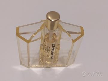 miniatura da collezione (o campioncino di lusso) del profumo Héritage di Guerlain, nella sua versione Eau de Toilette. Héritage è una fragranza maschile classica creata da Jean-Paul Guerlain nel 1992. È noto per essere un profumo legnoso, speziato e molto raffinato, con note di lavanda, sandalo e patchouli. La particolarità di questo pezzo è il supporto in plastica trasparente (plexiglass) sagomato che richiama le linee architettoniche del flacone originale full-size dell'epoca. Veniva spesso regalato nelle profumerie come pezzo da esposizione o omaggio ai clienti affezionati. Pezzo vintage da collezione.