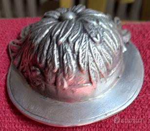 miniatura fedele in metallo .del cappello da bersagliere Vaira con piumaggio misure 7,5x3,5, un simpatico fermacarte per un nostalgico bersagliere, visibile al villaggio olimpico roma nord spedizione ovunque contatti con watts app