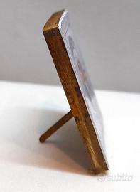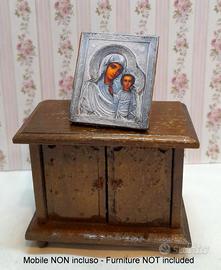 Miniatura legno di antica Icona Russa Madonna con Bambino Gesù mini quadro 1:12 Fatto a mano Casa Bambole