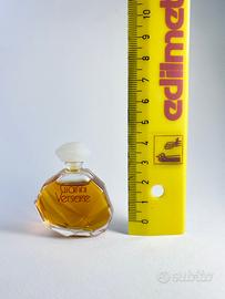 Rara miniatura da collezione del profumo Gianni Versace, una delle prime fragranze lanciate dalla celebre maison italiana. Il flacone è in vetro sfaccettato, con tappo satinato bianco e logo rosso in stile tipico dell’epoca. Contiene circa 5 ml di profumo ancora intatto, conservato in ottime condizioni.