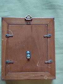 riproduzione in miniatura del dipinto "Ragazza che si appoggia sulla mano" (o "La donna che ascolta") di Jean-Baptiste Greuze, incorniciata in stile barocco.