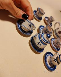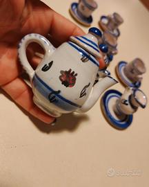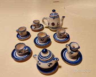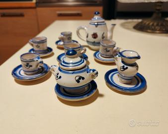 Miniature servizio da thé/caffè in ceramica dipinta a mano da collezione Originali vintage anni 90 Acquistate durante un viaggio in Marocco Composte da Tazzine piattini Caraffa teiera e Zuccheriera con I relativi coperchi Perfette Altezza Teiera 8cm Caraffa 3cm Zuccheriera 5cm Tazzine 2.5cm Diametro piattino 5 Roma zona ritiro TORVERGATA NUOVA