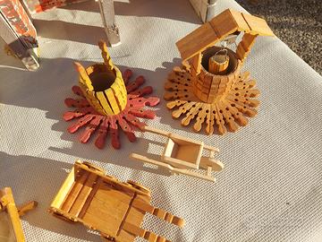 Miniature Modellini in legno fatte a mano, la più piccola misura in altezza 5cm, la più alta 25cm. Vendo tutto in blocco a 20€ ritiro a Gruaro o Pordenone, non spedisco