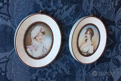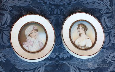 Antiche miniature realizzate a tempera dal famoso miniaturista, pittore, disegnatore e litografo francese Jean Baptiste Isabey (Nancy 11 aprile 1767 - Parigi 18 aprile 1855). Entrambe le miniature hanno dimensioni pari a 6,3 x 8,2 cm e 10,8 x 12,7 cm circa, rispettivamente esclusa e compresa la cornice. J. B. Isabey è stato il più famoso miniaturista d’Europa del periodo. Un miniatura è stata realizzata nel 1810 circa e raffigura Maria Luisa d’Asburgo (Vienna, 12 dicembre 1791 – Parma, 17 dicembre 1847), che nel 1810 ha sposato Napoleone Bonaparte e dopo la sua morte divenne duchessa di Parma, Piacenza e Guastalla. L’altra miniatura è stata realizzata nel 1807 circa e raffigura Luisa Augusta Guglielmina Amalia di Meclemburgo-Strelitz (10 marzo 1776, Hannover - 19 luglio 1810, Hohenzieritz, Germania), conosciuta semplicemente come Luisa regina di Prussia, consorte di Federico Guglielmo III di Prussia. Trattativa telefonica e solo consegna a mano.