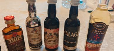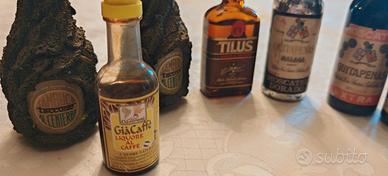 miniature liquori : sambuca centerbe, già Caffé, Tilus l'amaro al tartufo, moscato Malaga, liquore Al meme Zeppi's, da collezione